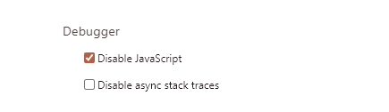 3. 아래쪽으로 내리다 보면 Debugger 항목에서 Disable JavaScript라는 것에 체크.
