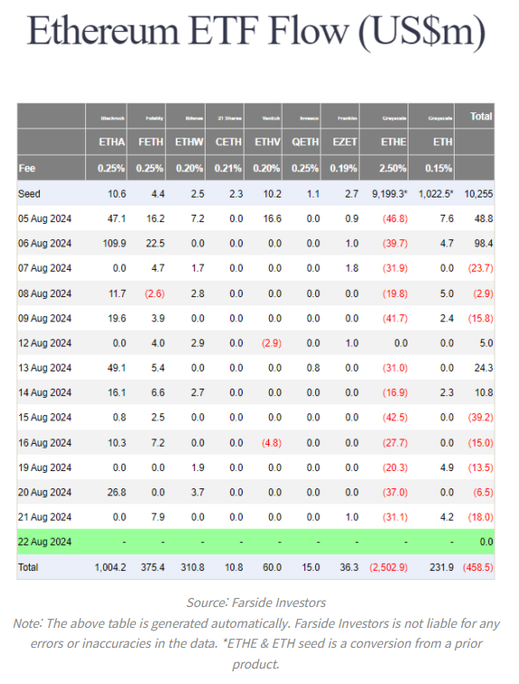 [뉴욕 = 장도선 특파원] 미국 증시에 상장된 비트코인 현물 ETF가 5일 연속 순유입을 기록한 데 반해 같은 기간 이더리움 현물 ETF에서 계속 자금이 빠져나갔다.