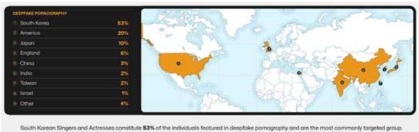 韓, 딥페이크 음란물 취약국 1위… “피해자 53%가 한국인, 상위10명 중 8명 韓가수”–美보안업체 보고서