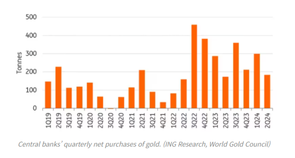 세계금협회에 따르면 중앙은행들은 올해 7월에만 37톤의 금을 매수, 직전월에 비해 순매수량이 두 배로 늘었다. 이는 1월의 45톤 순매수 이후 가장 많은 양이다. 지난해 중앙은행들은 1037톤의 금을 매수해 2022년 1082톤에 이어 역대 두 번째로 높은 연간 매수를 기록했다. 이에 반해 비트코인 시장은 최근 몇 달 동안 독일 작센 주의 비트코인 청산, 마운트곡스 채권자 상환, 미국 정부의 비트코인 매도 등으로 인해 수십억 달러의 공급 증가에 직면해 있다.