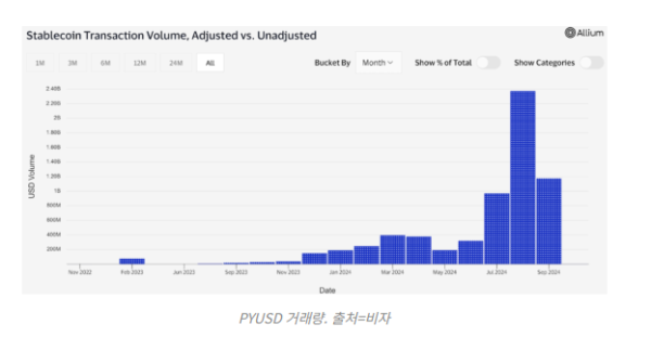 2일 비자(Visa) 온체인 분석에 따르면 지난달 페이팔(Paypal)의 스테이블코인 PYUSD 거래량은 약 11억8000만달러로, 지난 1월 거래량인 1억8800만달러(약 2480억원)에 비해 약 10배 증가했다. 이는 페이팔이 지급·송금 서비스 시장에서 수익성을 높이고, 기존 사업과의 시너지를 기대한 전략이 성공적으로 작용한 결과로 분석된다.