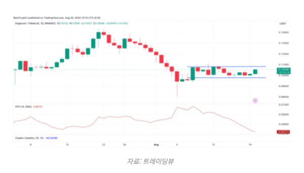 20일(현지시간) 비인크립토에 따르면, 도지코인은 8월 5일 폭락 이후 안정적인 가격 움직임을 보이고 있다. 이는 시장 변동성이 감소하고 있음을 나타내며, 단기적인 가격 변동 가능성이 줄어들고 있음을 시사한다.