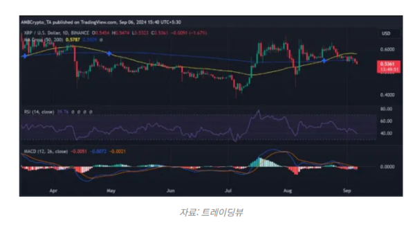 리플(XRP) 하락세 지속, ‘데스 크로스’ 징후와 약세장 우려