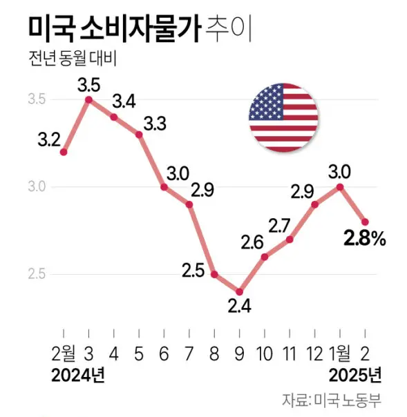 이날 2월 소비자물가 보고서는 도널드 트럼프 행정부의 관세 정책으로 인플레이션이 반등하고 경기침체를 촉발하는 것 아니냐는 공포감이 커지며 뉴욕증시가 크게 하락하는 등 시장 불안감이 커진 가운데 나왔다.