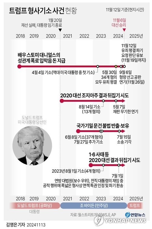 이에 따라 트럼프 당선인은 내년 1월 취임 전에 사법 리스크를 사실상 해소하게 됐다.