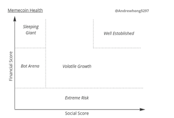 Financial Score(재정 점수)와 Social Score(사회적 점수). 이 지표들은 밈 코인의 건강 상태를 평가하는 데 중요한 역할을 한다.