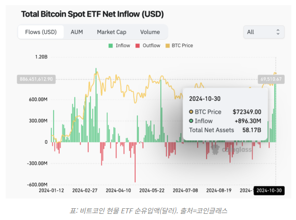 블랙록 비트코인 ETF 역대 최대 유입⋯하루 1.2조원 들어와