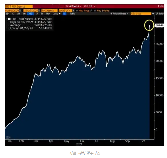 블룸버그의 ETF 분석가 에릭 발추나스는 “293일 만에 달성한 이 기록은 ETF 역사상 가장 빠른 기록”이라며, 기존 기록인 JEPI가 달성한 1272일보다 빠른 수치라고 밝혔다.