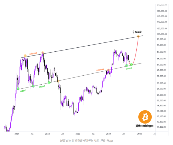 Mags는 그러나 “다음 상승 단계 전 5만1000 달러 추세선까지 추가 하락 가능성이 있다” 고 말했다.