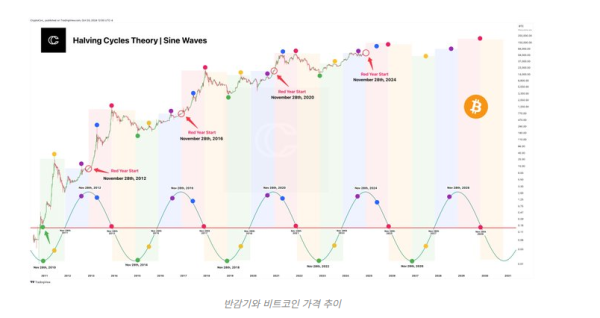 또 다른 분석가 크립토콘(CryptoCon)은 지난 3일 엑스 게시물을 통해 비트코인의 랠리가 가까워지고 있다고 말했다. 그는 2024년 11월 28일이 중요한 날짜가 될 것이라고 주장했다. 이는 비트코인의 반감기 사이클과 일치하며, 반감기 이후의 급격한 상승을 예고하고 있다는 것.