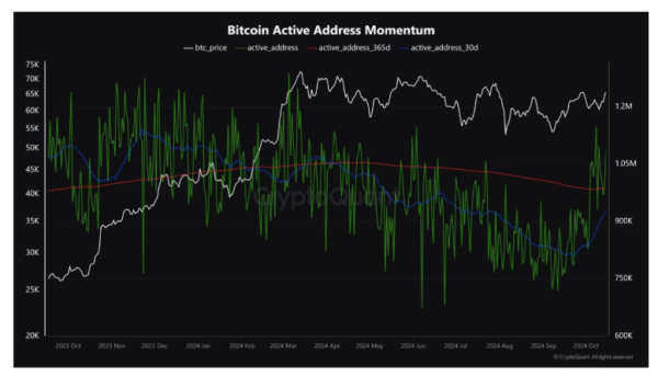 [블록미디어 명정선 기자] 비트코인이 네트워크 활동의 급증과 함께 사용자 참여가 크게 늘었다. 9월부터 활성 주소 수가 증가하면서, 7월과 8월의 부진한 성과에서 벗어난 모양새다. 이러한 네트워크 활동의 변화가 비트코인의 가격에 어떤 영향을 미칠지 주목된다.