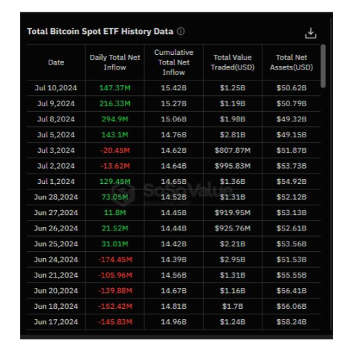 [블록미디어 J Myeong기자] 미국 비트코인 현물 ETF가 10일(현지시간) 총 1억 4,737만 달러의 순유입을 기록하며 4일 연속 자금 유입 행진을 이어갔다. 비트코인 가격이 5만 8000달러를 밑돌면서 조정 장기화 우려가 커지고 있지만 저가 매수에 대한 수요도 적지 않음을 보여준다.