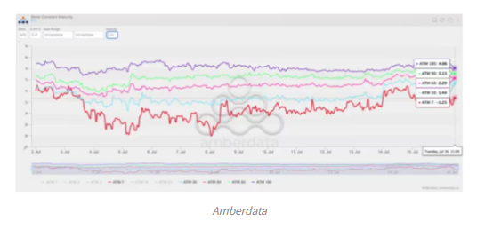 7일 옵션 스큐가 마이너스라는 것은 단기적으로 비트코인 가격 하락에 대비하는 풋 옵션 수요가 더 많다는 것을 의미한다. 그러나 장기 옵션 상품의 경우 옵션 스큐는 플러스 상태를 유지, 트레이더들의 장기 전망이 강세임을 가리킨다.