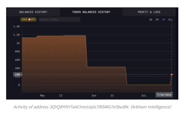데이터 제공업체 아캄 인텔리전스(Arkham Intelligence)와 블록체인 탐정 룩온체인(Lookonchain)에 따르면, “3QYQ8YthYTaAFJmzUqiis7iRSWG7e5buBN”으로 라벨링된 주소가 16일 245 BTC, 약 1600만 달러 어치를 매수하며 총 보유량을 248 BTC로 늘렸다.