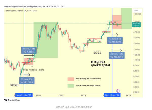 “역사가 반복된다면, 비트코인의 재축적 범위에서의 돌파는 2024년 9월에 발생할 것이다.”