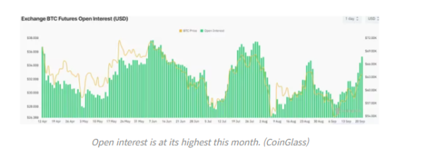 비트코인 선물 시장은 또 향후 가격 상승에 베팅하는 롱 포지션 성향을 보이는 것으로 분석됐다. 일반적으로 자산 가격 상승시 미결제약정 증가는 강세 베팅으로의 자금 유입을 암시한다.