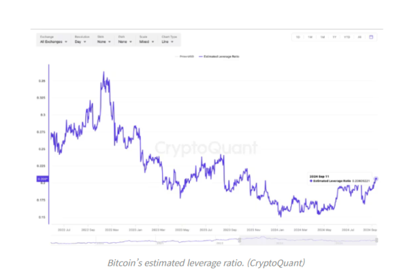 크립토퀀트는 블로그에 올린 게시물에서 “최근 비트코인 추정 레버리지 비율의 상승은 파생상품 시장에서 투자자들이 더 높은 레버리지를 사용하는 추세를 반영한다”고 분석했다.