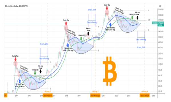 트레이딩샷은 비트코인 가격에 대한 ‘프랙탈 사이클’ 의 유사성을 언급하며, 비트코인이 예측한 경로를 그대로 따라가고 있다고 주장했다.(아래 차트 참조)