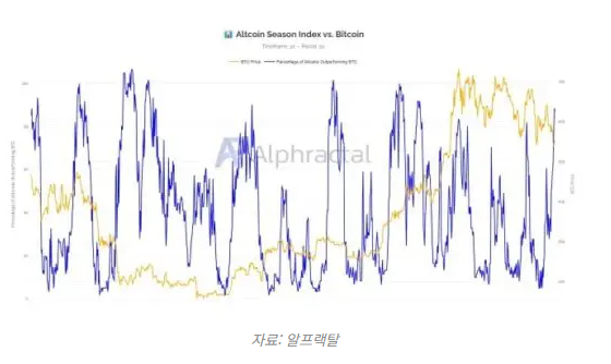 비트코인 정체 속 알트코인 강세 … 알트시즌 곧 시작?