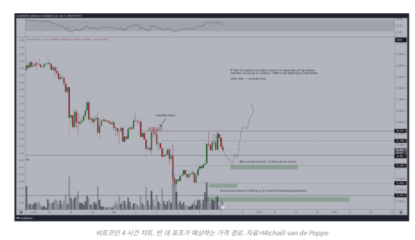 반 데 포페는 “CPI 이벤트 전, 일시적인 조정이 발생하고 있다. 55~56K가 지지되면 괜찮을 것”이라고 결론지었다.