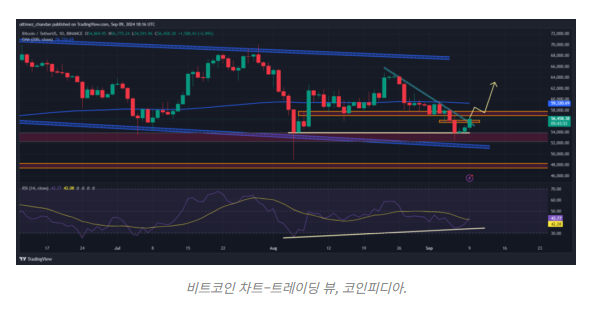 비트코인(BTC)이 최근 하락 추세선을 돌파, 반등에 성공하고 5만8,000달러 저항선을 향해 나아가고 있다고 코인피디아가 9일 분석했다.