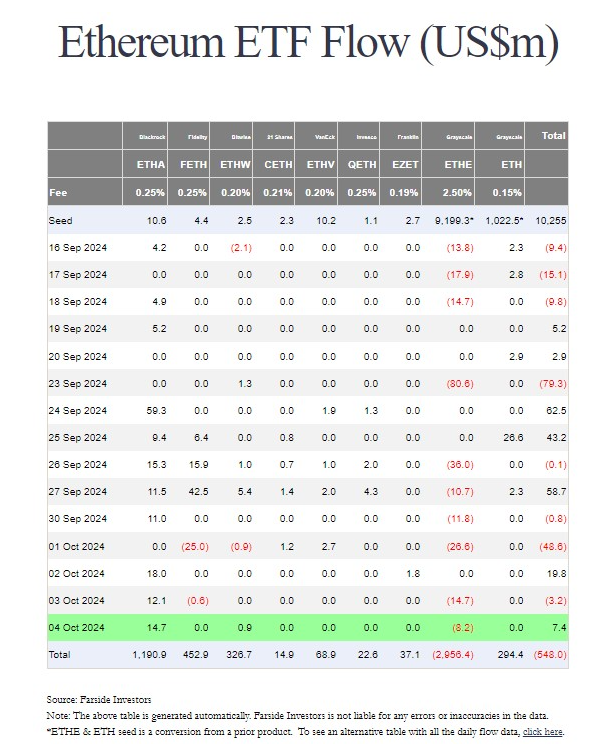 금융정보 플랫폼 파사이드 인베스터(Farside Investors)는 엑스에 이같은 내용을 공유했다.