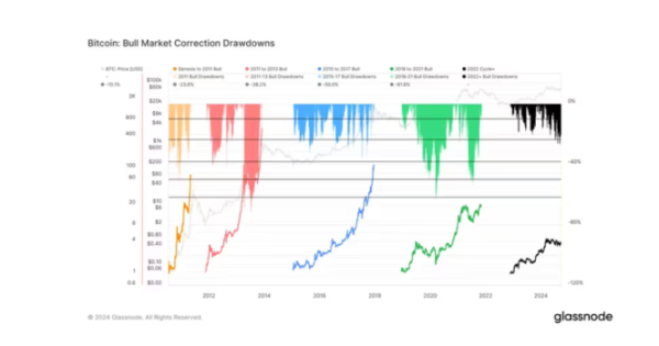 이번 사이클에서는 다지기 기간과 변동성이 줄어드는 긍정적인 측면이 목격된다. 이번 사이클에서 가장 큰 하락폭은 30% 이하로, 이전 사이클과 비교했을 때 가장 작다. 이런 안정성은 변동성을 감당하기 어려운 신규 기관 투자자들에게 매우 중요한 요소다.