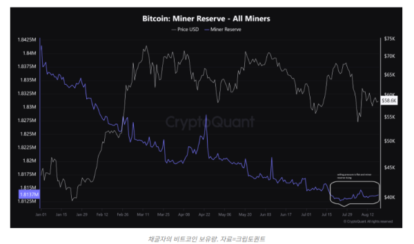 8월에 들어 채굴자들의 매도 압력이 크게 감소한 것으로 보인다. 비트코인이 현 가격 범위에서 안정될 가능성을 높여준다.