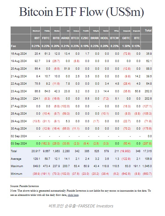 비트코인 ETF $288M 순유출–4개월 만에 최대