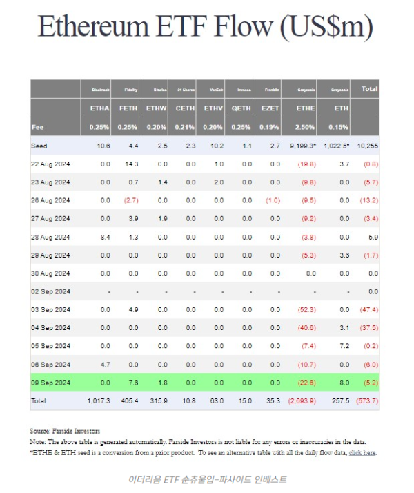 비트코인 ETF 9일만에 순유입 전환–이더리움 ETF $5.2M 순유출