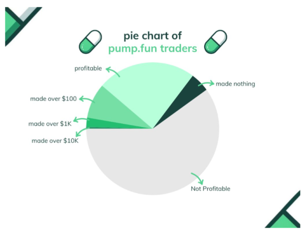 또 펌프펀 플랫폼에서 거래한 사용자 중 60%가 손실을 입었으며 1000달러 이상 수익을 낸 사람은 단 3%에 불과한 것으로 집계됐다.