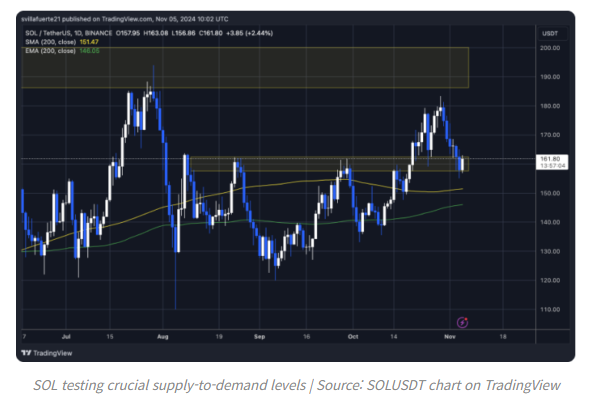 하지만 미국 대선과 연방준비제도(연준)의 금리 결정이라는 거시적 이벤트가 불확실성과 시장 변동성을 높일 가능성이 있어 이번 주는 잠재적 가격 급락 가능성도 존재하는 것으로 지적됐다. 이러한 대외적 요인들은 솔라나의 가격 움직임에 영향을 미칠 수 있으며, 그 때문에 저항선 돌파가 한층 중요한 상황이다.