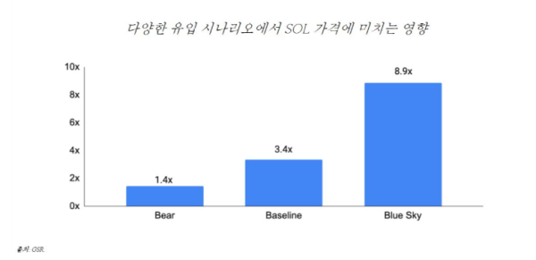 비트코인 ETF의 승인으로 비트코인 가격이 두 배 이상 상승한 것처럼, 솔라나 ETF도 SOL 가격에 큰 영향을 미칠 수 있다. 다양한 시나리오에 따라 SOL의 상승 폭은 1.4배에서 최대 8.9배까지 예상된다.