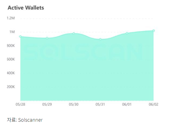 솔라나의 활성 주소는 지난 몇주 동안 최소 80만개 이상을 유지했으며 이날 현재 100만개를 넘어섰다.
