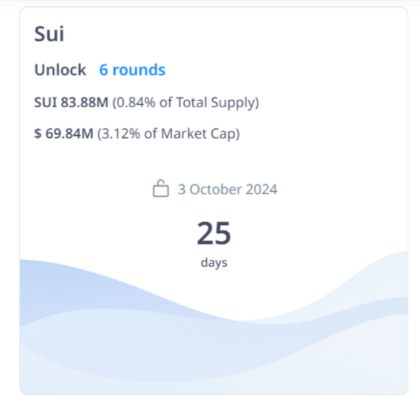 실제로 크립토랭크 데이터에 따르면 수이는 10월 3일 모두 8388만 개의 코인이 언락될 예정이다. 이는 총 공급 물량의 0.84%, 시총 대비 3.12%에 달하는 물량이다.