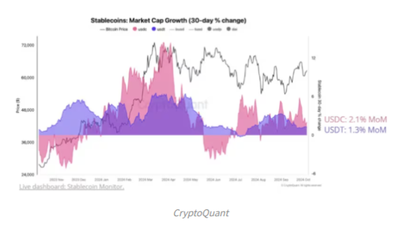 코인데스크에 따르면 과거 비트코인의 10월 상승은 대개 10월 15일 이후에 집중됐다. 스테이블코인 유동성 증가는 10월 후반 비트코인 가격 상승을 지지할 가능성이 있다. 앞으로 몇 달 동안 암호화폐 시장에 영향을 미칠 중요한 촉매제로는 미국 대선이 지목된다. 대선 결과는 향후 4년간의 일반적인 금융 및 암호화폐 정책의 방향을 결정할 가능성이 있다.