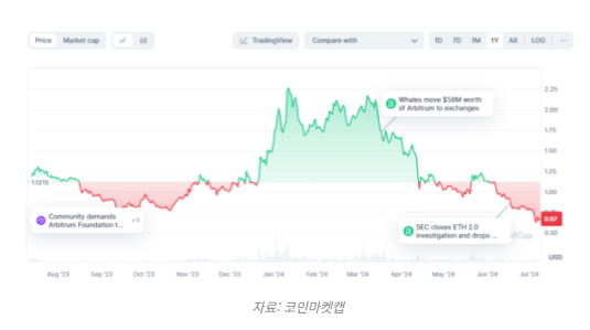 아비트럼(ARB), 이더리움 L2 종목 중 최악 실적