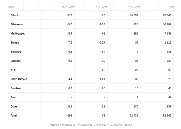 8월 24일부터 8월 31일까지의 기간 동안, 미국 투자자들은 암호화폐 투자 상품 매도에서 선두를 차지했다. 미국에서만 3억 1,800만 달러의 자금이 유출된 것으로 나타났다.