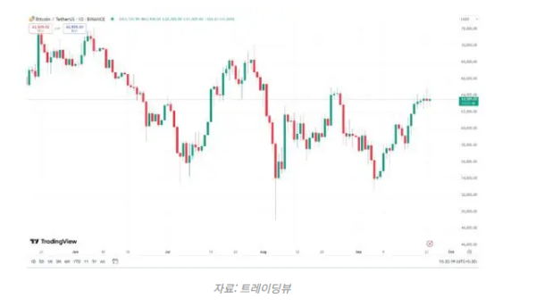 2024년 초, 비트코인의 가격은 4만2300달러였으나 현재 6만3591달러로 50% 이상 상승했다. 특히 9월 초 5만8967달러에서 시작해 7.8% 상승한 뒤, 9월 7일 연방준비제도의 금리 인하 발표 직전 강한 매수세로 인해 17.95%까지 급등했다.