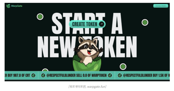 특히 워프게이트펀(warpgate.fun)은 누구나 저렴한 비용으로 토큰을 만들 수 있는 플랫폼으로 주목받고 있다. 이 플랫폼은 밈 코인부터 실용적인 프로젝트까지 다양한 토큰을 손쉽게 생성할 수 있도록 설계됐다.