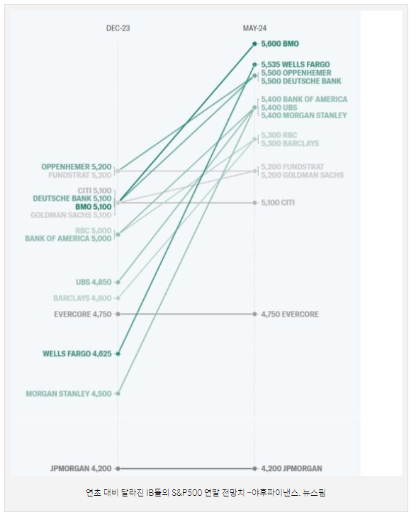 지난 주말 S&P500지수 종가는 5304.72로 상향된 IB들의 연말 전망치 중간값을 뛰어 넘은 상태다.