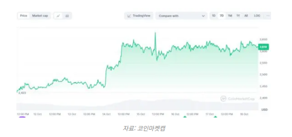 [뉴욕=박재형 특파원] 10월 후반 및 4분기 암호화폐 시장의 반등이 예상되는 가운데, 이더리움(ETH) 가격은 최근 몇 주간 점진적인 상승세를 보이며 강세 모멘텀을 얻고 있다.