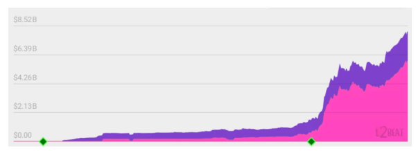L2비트에 따르면 10일(현지시간) 기준 베이스의 TVL(총 잠금 가치)은 80억 500만 달러에 이르렀다. TVL이란 Total Value Locked의 약자로, 블록체인 네트워크에 예치되어 있는 자산 규모의 총합을 뜻한다. 은행으로 예를 들면 고객이 은행에 맡겨 놓은 예금의 합계다. 통상 TVL이 높다는 것은 해당 네트워크를 사용하는 고객(사용자)이 많고 규모도 크다는 것을 의미한다.