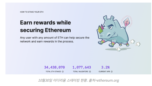 [블록미디어 박수용 에디터] 이더리움의 3분기 스테이킹 수익률이 3.2%로 연초 3.5% 대비 소폭 감소했다.