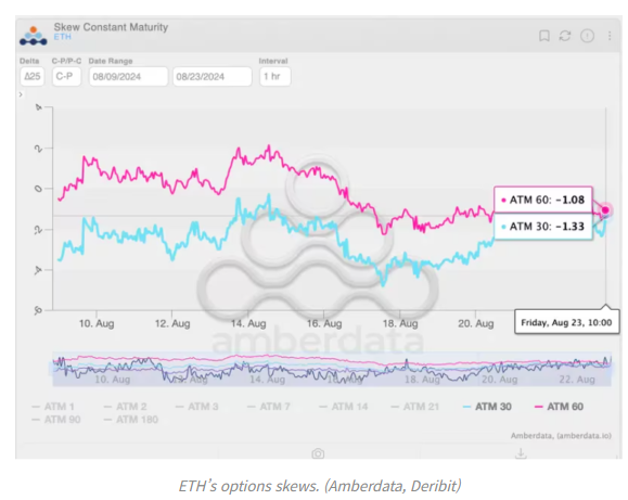 이더리움 30일과 60일 옵션 스큐 마이너스 지속 … 보호용 풋옵션 가능성