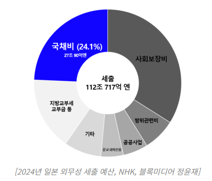 기존 일본의 2024 회계연도(2024년 4월~2025년 3월) 일반회계 예산안은 112조700억 엔(약 1015조 원)으로, 이 중 약 25%가 국채 원리금 상환비였다.