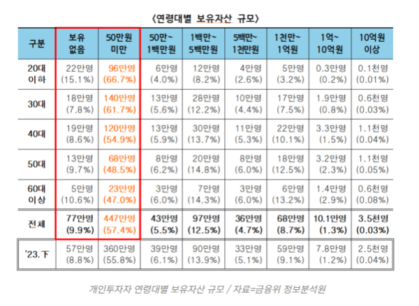 지난달 31일 금융위원회 금융정보분석원(FIU)이 발표한 ‘국내 가상자산 사업자에 대한 실태조사 결과’에 따르면, 1억~10억원 이상의 가상자산을 보유하고 있는 투자자 10만4000명 중 절반이 넘는 5만6000명(54%)으로 나타났다.