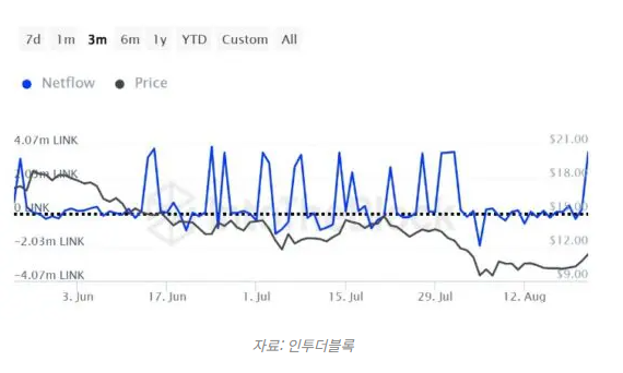 이로 인해 2억 5600만 LINK에서 3710만 LINK로 전체 유입량이 급증했다. 이는 최근의 가격 상승이 투자자들의 신뢰를 다시 불러일으켰음을 시사한다.