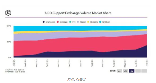 크립토닷컴 美 달러 지원 현물 거래소 점유율 1위