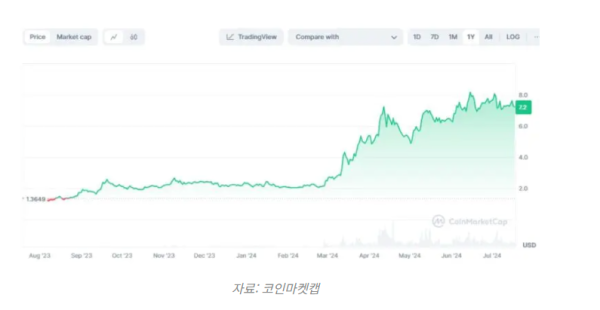 탈중앙화 저장 서비스 블록체인 프로젝트인 톤코인(TON)이 2024년 들어 눈부신 성장을 기록했다.